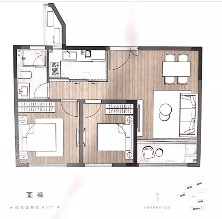95㎡户型2室2厅1卫