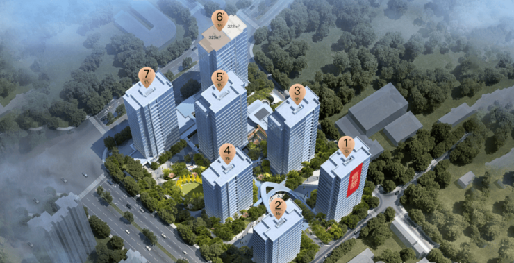 整个园区以围合式布局展开,七幢建筑借鉴中国古典园林的精髓,最大楼间距达到了63米,使得每栋楼都能享受到270°的开阔视野,仿佛是一座座隐匿于花园中的岛屿。为了与景观相呼应,园区立面采用“水晶天幕”设计,线条纤细,使建筑宛如天空中垂下的纯净湖面。