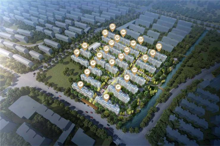 项目总占地面积约4.73万平方米,总建筑面积5.68万平方米,容积率仅1.2(板块最低),绿化率30.61%,规划24栋6层纯叠墅,共378户,车位配比达1:1.89(715个),是相当纯粹的别墅小区