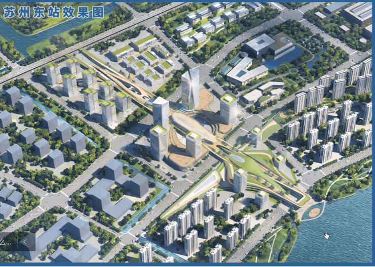 苏州东站枢纽,苏沪发展桥头堡:深度参与共建共享虹桥国际开放枢纽,引领区域产业对接融入上海和长三角一体化发展,实现环沪半小时生活圈。