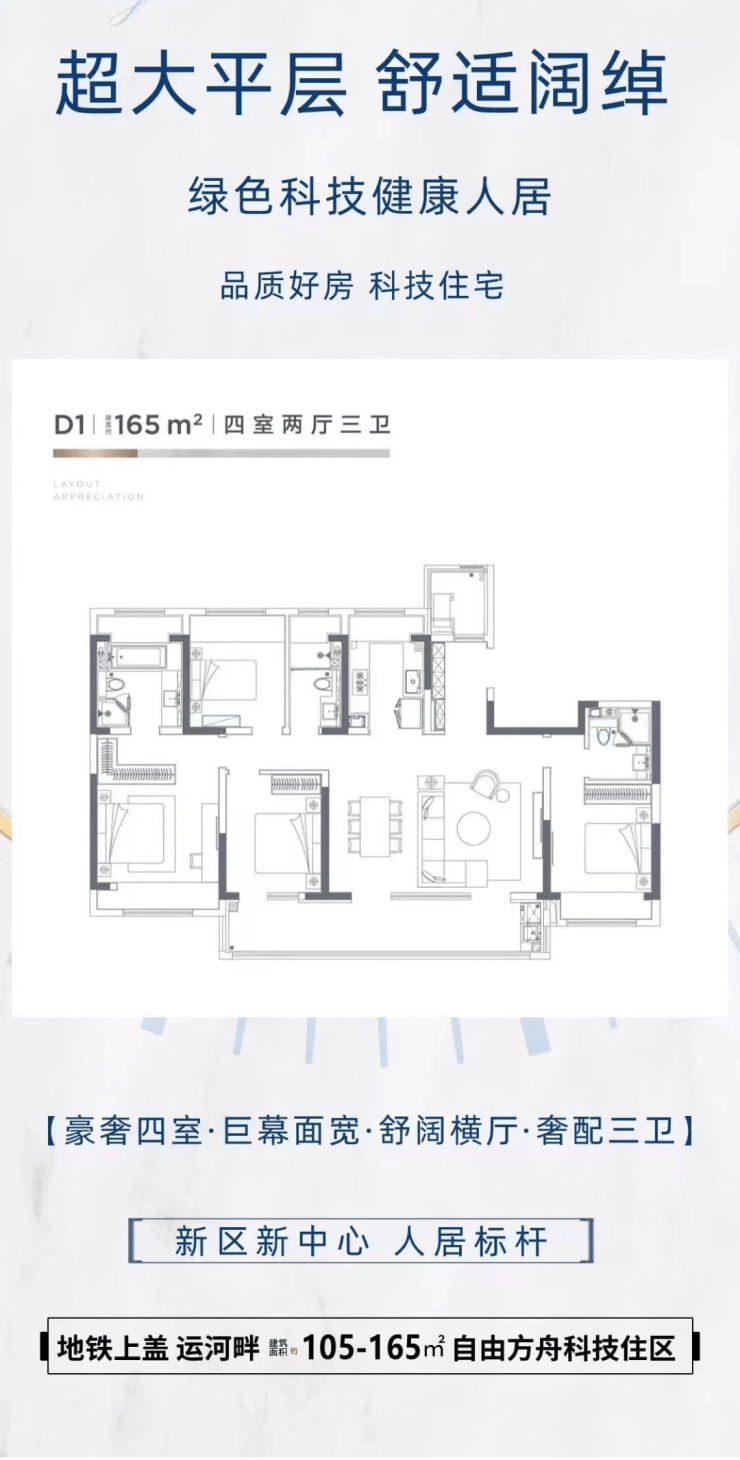 科技系统:采用“地源热泵系统 + 表层辐射系统 + 全置换新风系统”,实现室内恒温(20-26℃)、恒湿(30%-70%)、恒氧。无论冬夏,室内无需安装空调地暖,即可享受四季如春的舒适环境,且系统支持分户智控,满足不同家庭成员的个性化需求^。