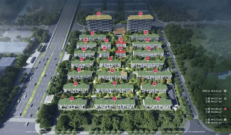 建筑类型 :低密洋房+叠拼社区,共规划24栋住宅,包含22栋4层叠加别墅与2栋11层四代宅洋房,总户数约282户
