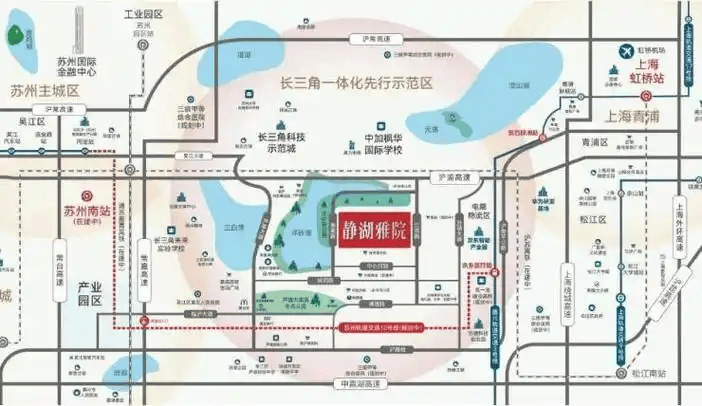 高铁联通 :约7公里直达苏州南站(沪苏湖铁路与通苏嘉甬城际高铁交汇点),未来通车后,8min抵松江,20min直达上海虹桥枢纽,实现高效商务通勤。