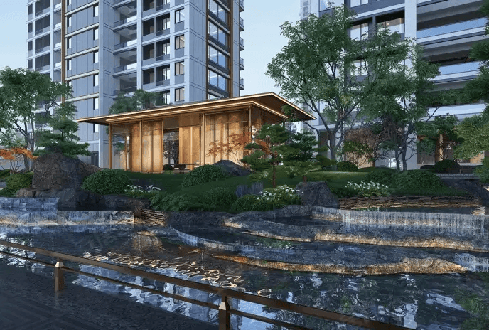 社区内规划约2000㎡奢华会所、下沉水院、松林剧场等景观,营造东方意境。