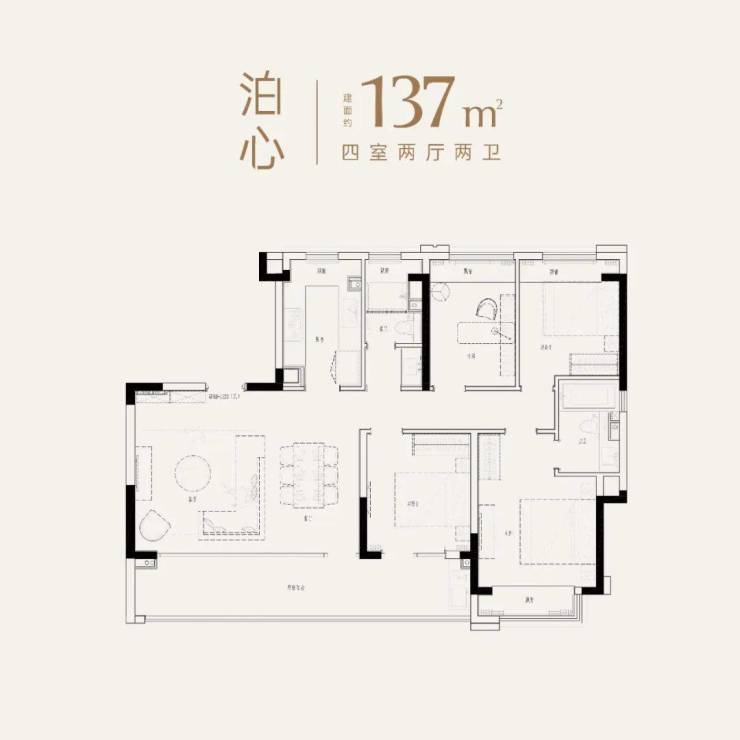 就拿约137㎡,4房2厅2卫的户型来说,存在空间划分不合理。