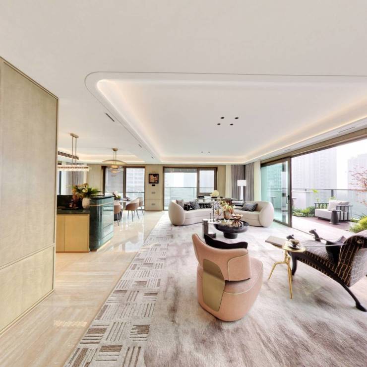 外立面采用约180°-360°环绕式露台设计,突破奇偶错层布局,避免空间交叠产生视线干扰,以更高阶的方式,垂直叠落“湖境-园境-院境”三重景观体系,衍生星光晚会、露天酒会、花园下午茶等立体墅式庭院生活场景,为生活注入全新的见解。