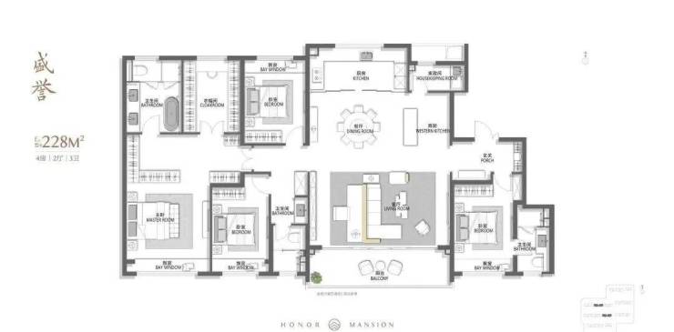 全盘规划5种户型,面积约138-228㎡。首期推出158㎡、178㎡和228㎡三种户型。