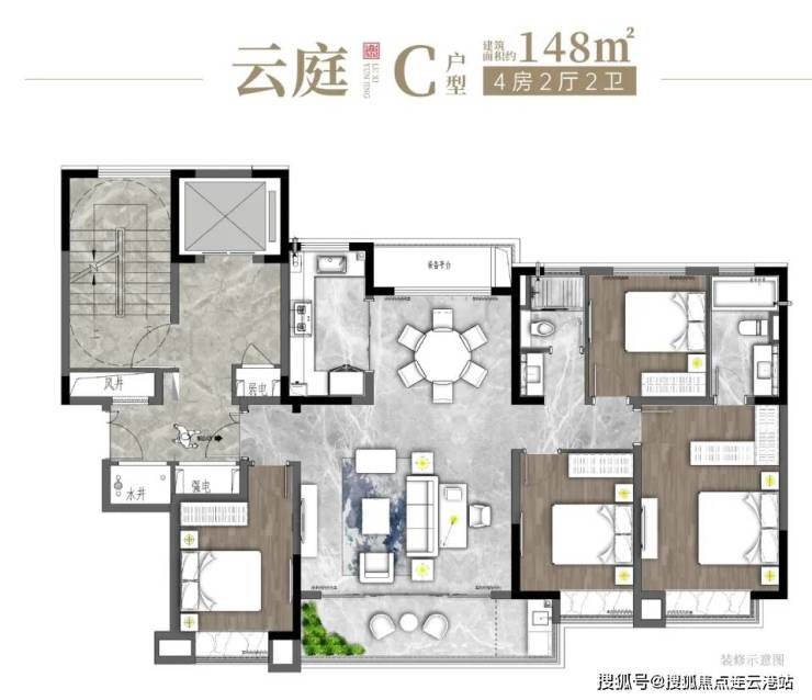 主力户型为建面约138-186㎡的4居室,具体如下: