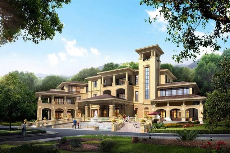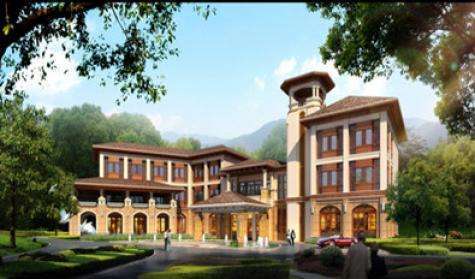 建筑与园林设计精美:外立面采用米色系天然砂岩及高档仿石材涂料,呈现出西班牙风格,砖红玻璃瓦、绛紫色门窗等元素,视觉效果好。园林融合山体,打造出"山居十二景"和7重绿化景观体系,实现了人与景观的完美结合