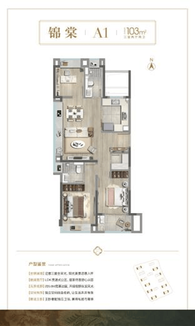 主力户型建面约103–197㎡,得房率高达76%–79%,空间利用率优于同类高层产品 。