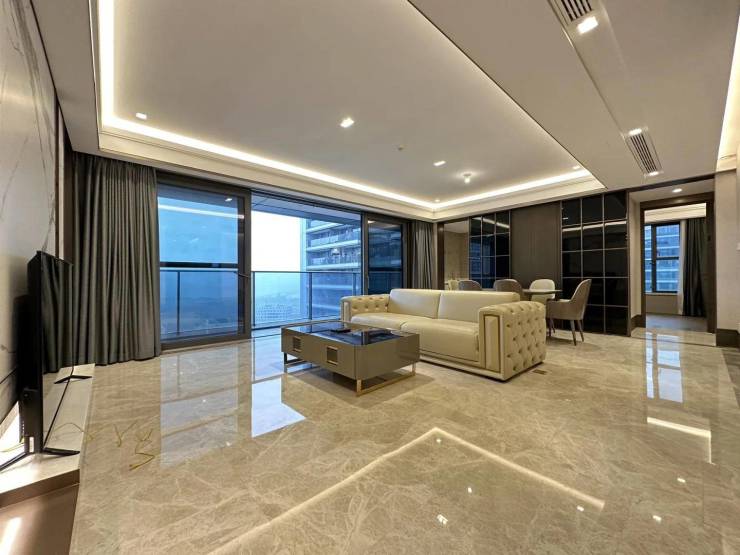 ### 二、产品设计该楼盘的产品设计独具特色。首先,推出精装大平层产品,面积段大约在 230 - 380㎡之间,层高处于 3.15 - 3.3 米,打造出宽敞舒适的居住空间。其 LDK 一体化横厅设计亮点十足,面宽超过 10 米,更为惊艳的是,能够带来 270°环幕江景视野,让住户仿佛置身于一幅壮阔的江景画卷之中。在户型规划上,部分高区户型每一层仅有 6 户,采用两梯两户或三梯的配置方式,极大地保障了住户的私密性,让业主尽享专属的宁静与自在。在内部装修细节方面,厨房采用德国柏丽定制,品质卓越。智能家居系统的配备,让生活更具科技感与便捷性。主卫的镜面设计别出心裁,巧妙地将城市景观融入其中,增添了独特的居住体验。楼盘的外立面同样吸睛,选用玻璃幕墙与黑金花石材相结合的设计,钻石切割般的线条,完美彰显出超跑美学,尽显时尚与奢华。若您对该楼盘感兴趣,欢迎拨打售楼热线:400 998 3632 了解更多详情。
