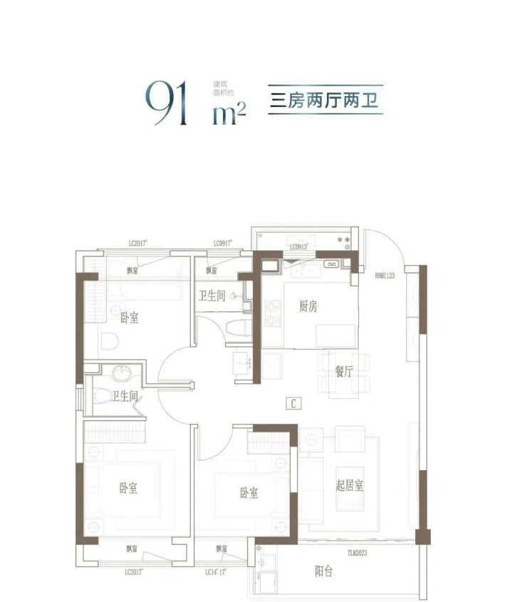 高层:建面约81–122㎡,主打三房设计,如91㎡做到3房2卫,空间利用率高
