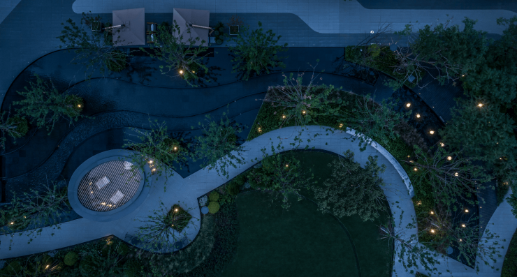 全龄段设施:儿童游乐区、老年康养角、宠物友好区、夜光跑道