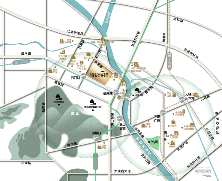 未来换乘:盛岸站(4号线) 步行约1.2公里,可直达惠山古镇、新吴区、锡东新城