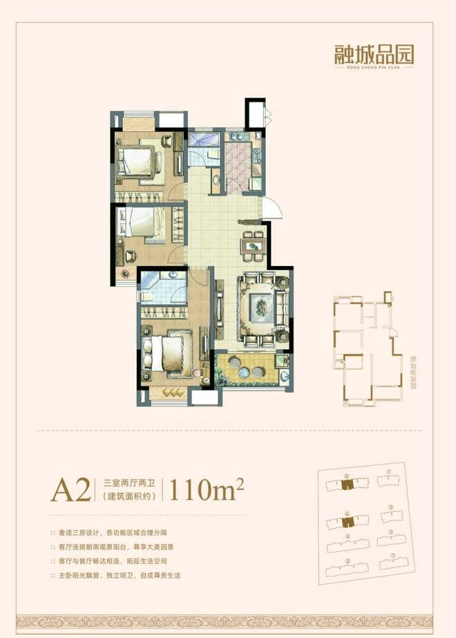 110㎡三居宽敞舒适型分布于8/7/5/6幢,1梯2户约180万/套对品质有要求的家庭