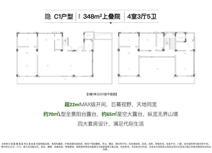 320–364㎡叠墅:下叠标配50–80㎡私家庭院,上叠配270°环幕露台+屋顶花园,可自由拓展100㎡功能空间,酒窖、茶室、画廊、家庭影院随心定制,真正实现“一宅一世界”。