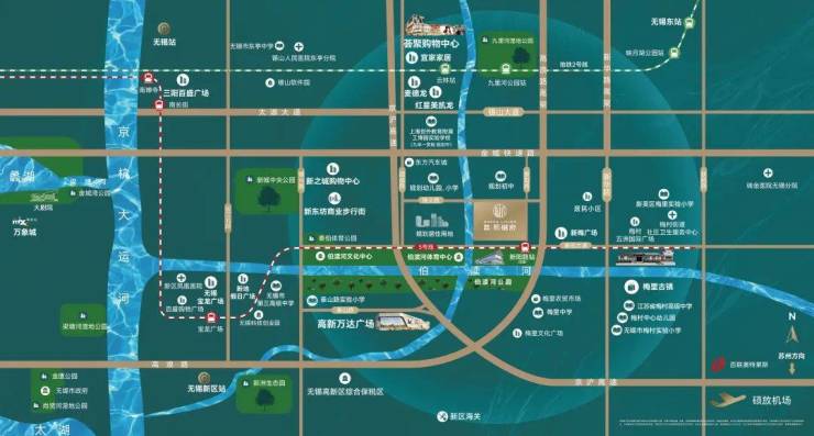 【民生配套】新洲生态园、伯渎河公园、瑞金医院无锡分院、硕放中学、波士顿国际学校等