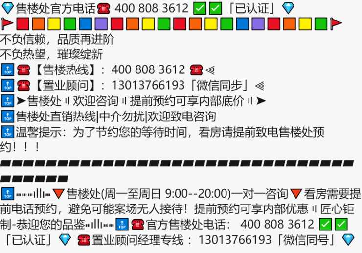 🔝⑉⑉⑉ıllı⑉🔻售楼处(周一至周日 9:00--20:00)一对一咨询🔻看房需要提前电话预约,避免可能案场无人接待!提前预约可享内部优惠〢匠心钜制-恭迎您的品鉴⑉ıllı⑉⑉🔝☎官方售楼处电话: 400 808 3612 ✅✅「已认证」💎 ☎置业顾问经理专线 :13013766193「微信同号」💎