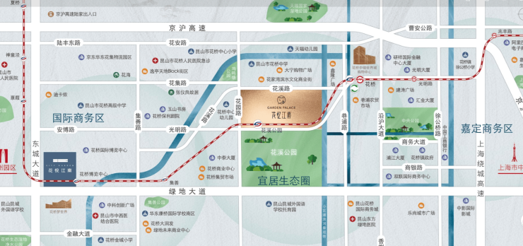 交通 :除地铁外,自驾经 绿地大道 25min可达上海嘉定,35min直达上海中环。