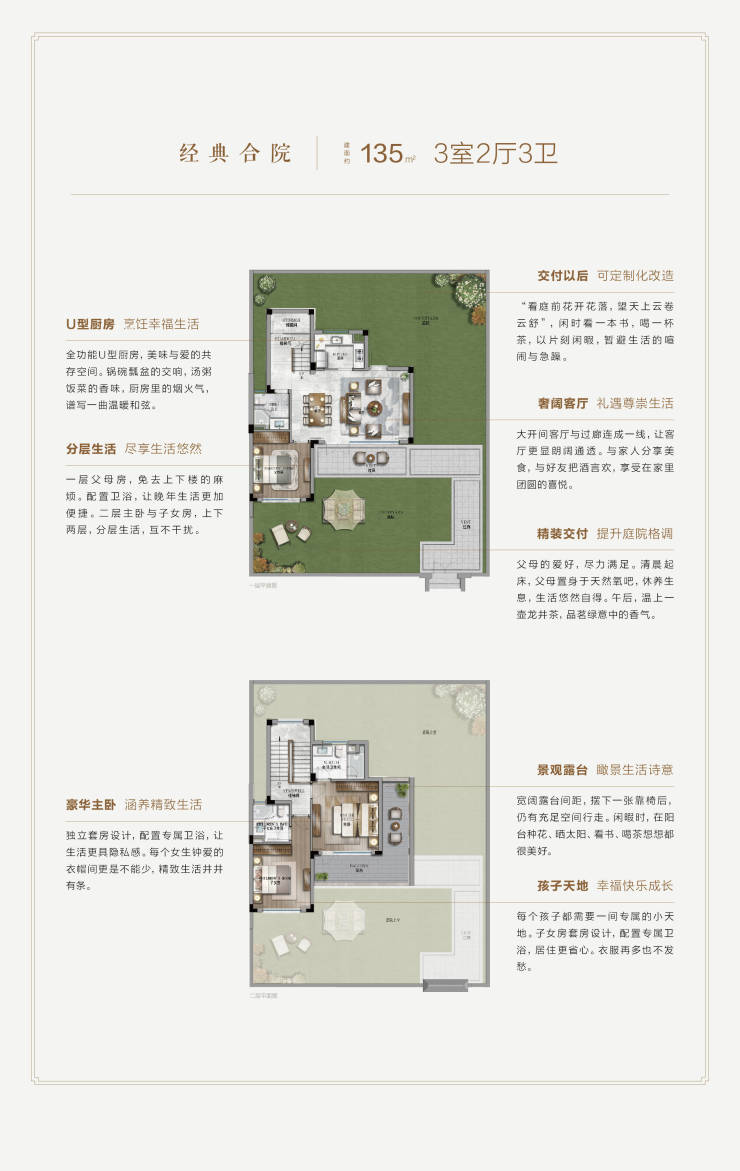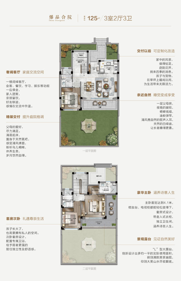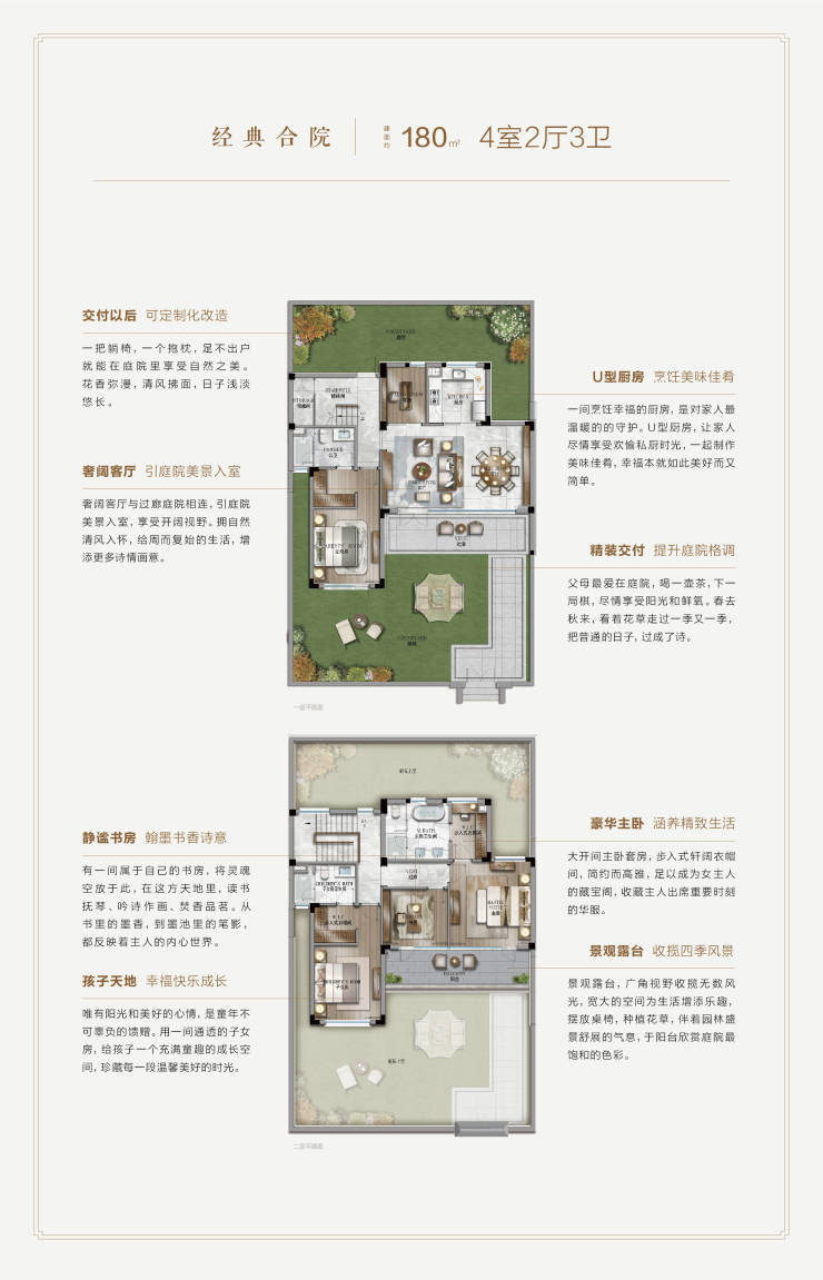 合院:建面125-206㎡(庭院60-280㎡),总价300万-520万元/套(带装修)
