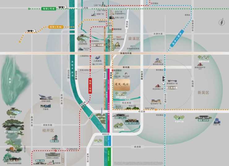 周边商业综合体:距离长江路商圈约1.5公里,集萃约28万㎡宝龙城市广场、约3万㎡新地假日广场、约15万㎡茂业天地等繁华商业;距离太湖广场商圈约3公里,满足高端消费需求。