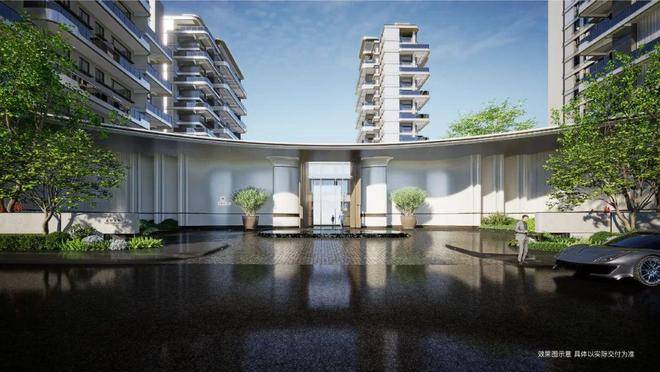 在实景呈现的全维示范区中,约80m宽、9m高的 纯白拱门采用白玉兰天然石材进行了几何体块的构筑,城市喧器在此悄然退场,唯留一场尊崇序章。