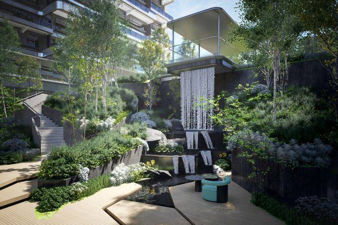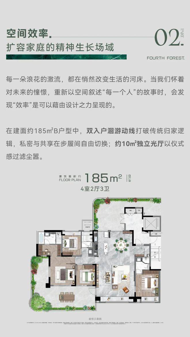 以中央立体水庭为核心,匠心营造 沉浸式垂直森林景观,缔造立体森林岛屿之境,实现传统礼序美学与现代人居体验的深度融合。