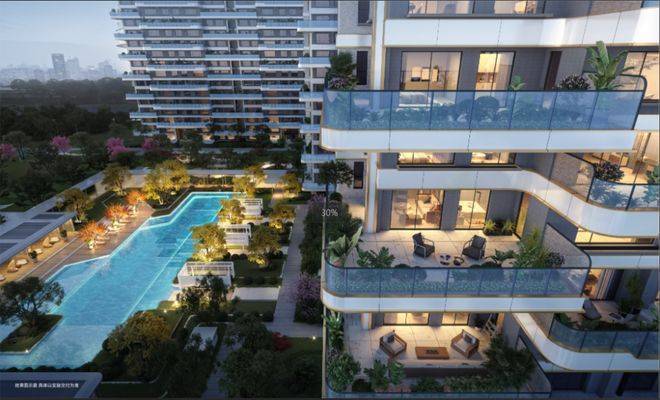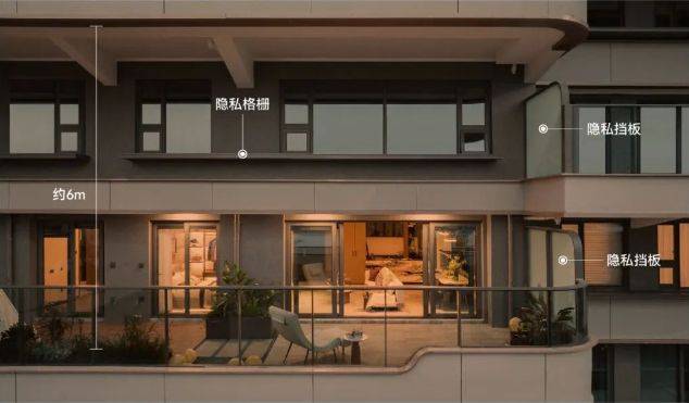 蠡棠森屿通过 错位设计与L型咬合式边厅花园,将平面空间立体化,实现 约30-50㎡墅级空中庭院的全户型覆盖, 得房率高达约120%。这一设计不仅打破传统公摊限制,更让大平层拥有别墅的领地感。