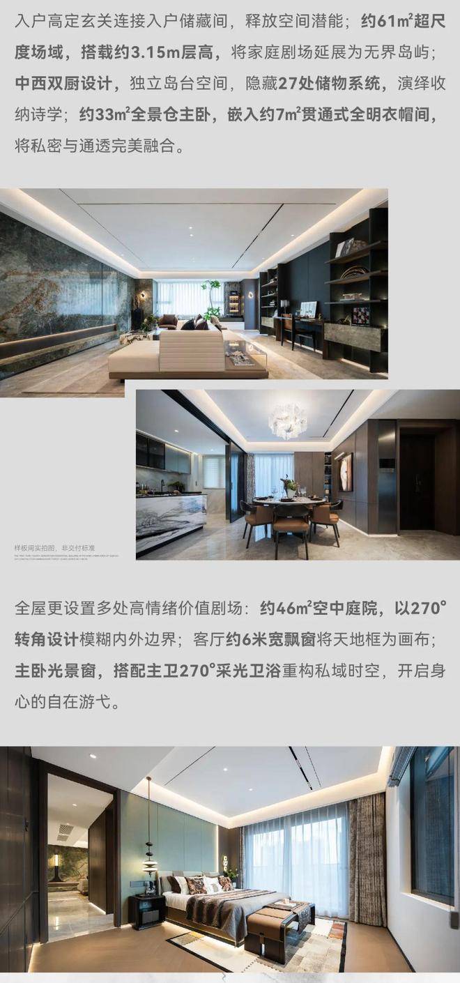 建面约220㎡的「典藏版墅居」堪称空中墅居的终极形态,独门独户+双重归家动线+前庭后院+无界景观+墅级挑高+动静有序+星级主卧。