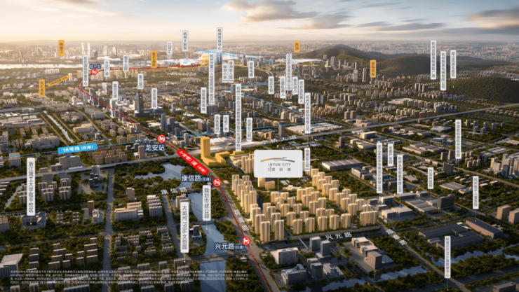 总建面约63万㎡,横跨地铁9号线兴元路站(在建)和康信路站(在建)两大地铁站,是杭州迄今为止,少数在自家小区里拥有两座地铁站的小区。