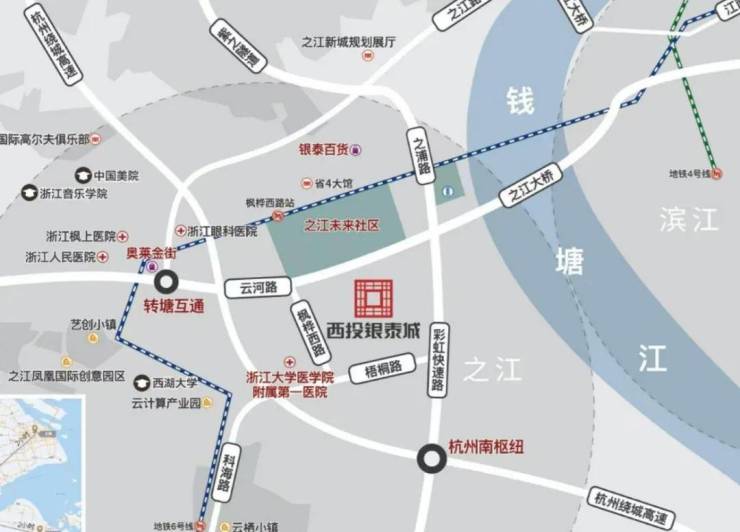 :项目位于之江板块核心区域,紧邻钱塘江,直面钱塘江景,背靠西湖风景区,形成“三江汇流、双西环抱”的稀世格局。