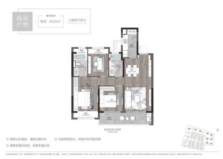 【建面105㎡3居】:价格在158.0170.0万,分布于46,2梯4户,层高3.00米,总楼层25F
