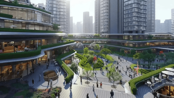 社区形态:通过3000㎡天光泳池会所+800米屋顶跑道+5万㎡中央园林实现“高密度下的低密生活体验”