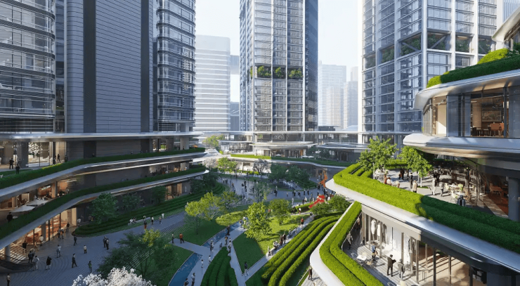 建工EIC自带4万方街区商业,涵盖恒温泳池、精品超市等多种业态,满足业主的日常购物和休闲需求。此外,项目周边还有SKP、万象城等顶奢商圈,与IFC、来福士等隧道互联,形成了一个高端商业闭环,为业主提供了丰富的消费选择。