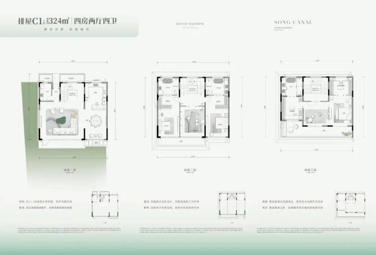 ●面面大面宽:每一层都以超级尺度的南向3开间为标准,重现家族大宅气度