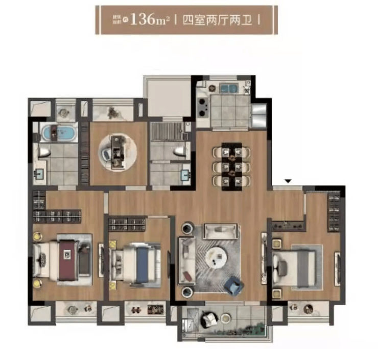 136–140㎡ 25,000–26,000元/㎡ 325万–350万元 现房交付 四房双卫,LDK一体化,空间利用率高