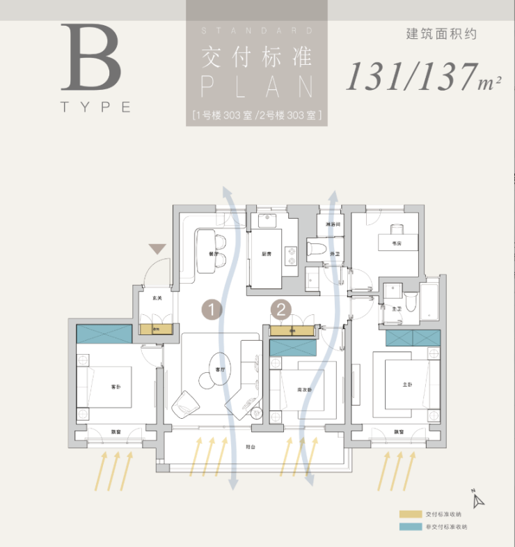 131-142㎡四房:双卧朝南,部分户型含独立衣帽间