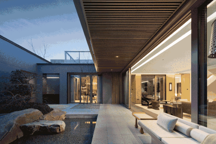 产品设计:合院还原故宫礼制格局,采用3.6米高墙围合,小高层引入现代极简风格