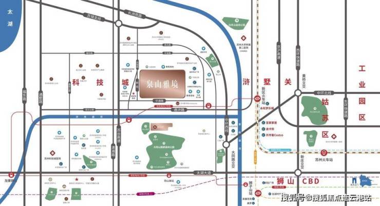 对于自驾出行的居民,泉山雅境周边的路网同样表现出色。通过太湖大道向西可接驳 S9 苏台高速,直达无锡、常州等苏南城市;向东连接北环快速路,可快速抵达园区湖东、苏州中心等核心区域。同时,项目距离苏州绕城高速约 6 公里,通过绕城高速可便捷前往上海、南京等长三角主要城市,满足商务出行或周末度假的需求。