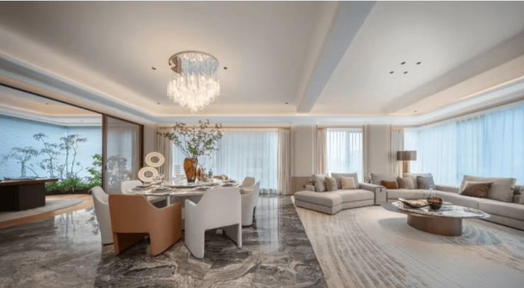 装修标准9000元/㎡,采用国际一线品牌,如嘉格纳厨电、劳芬卫浴、大金中央空调、杜拉维特智能卫浴等