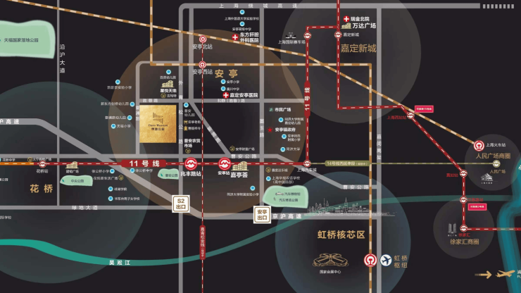 项目地处花桥国际商务区核心,与上海安亭老街仅一街之隔,直线距离上海市区极近,是真正的“沪上后花园”。步行约500米可达上海边界,实现跨城生活零障碍。
