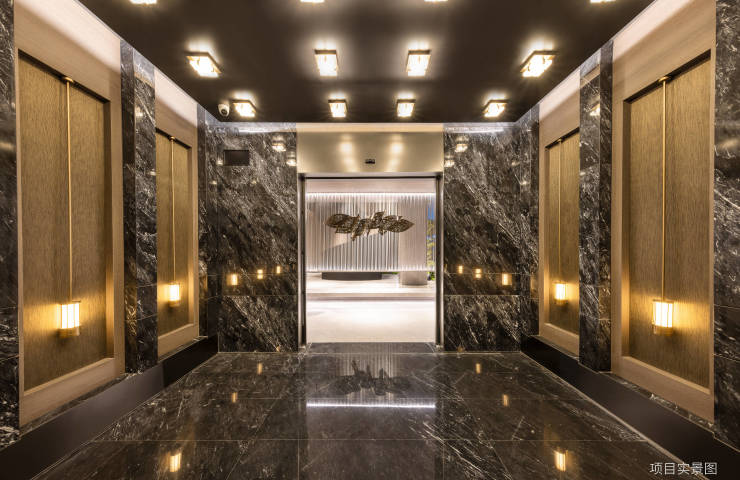 项目打造三进归家动线,10米星空顶大堂,入口轴线大气有序,共同构筑起对外昭示的尊贵界面