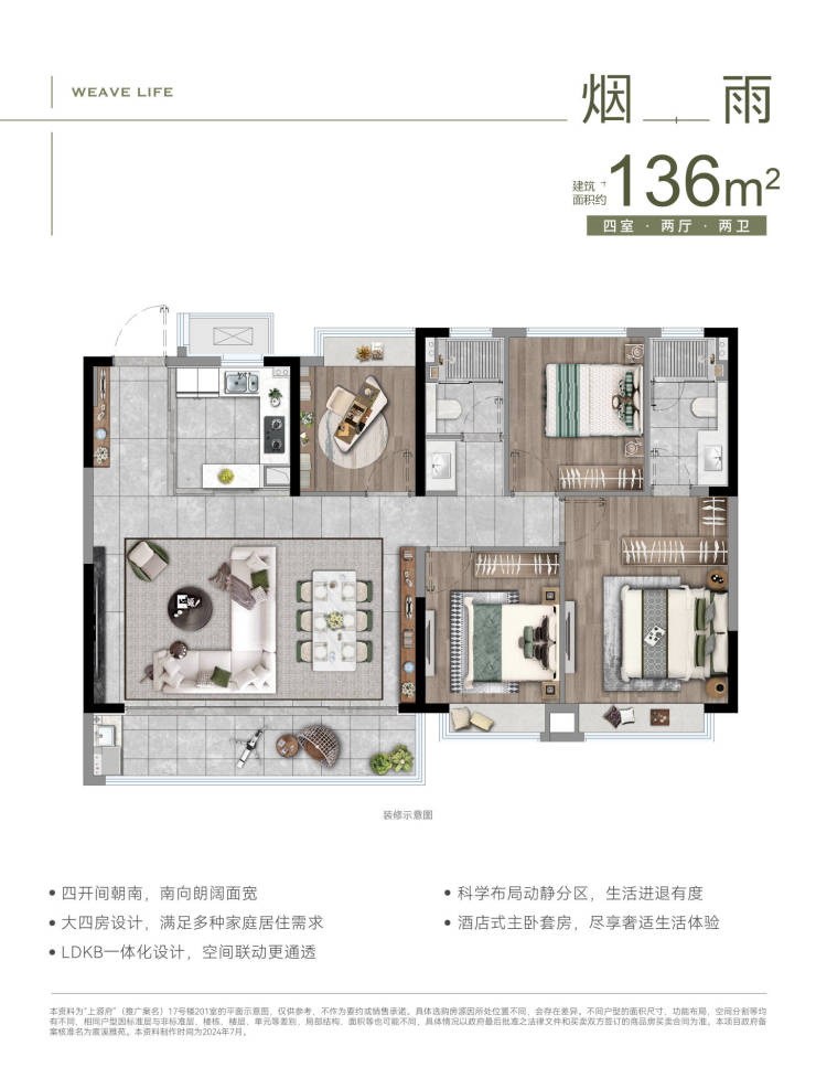 136㎡:四室两厅两卫(总价约310万)
