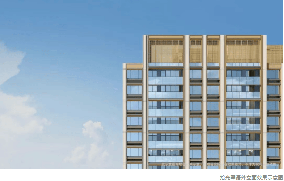 外立面:公建化设计,落地玻璃窗+石材铝板基座+层间金色装饰条,现代美学质感突出