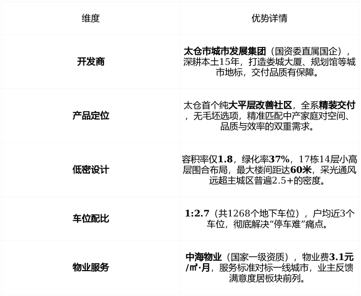 轨交 :距 嘉闵线十八港路站150米 (规划中),未来 30–40分钟直达上海虹桥枢纽 ,是太仓少数真正实现“沪太通勤”的项目。
