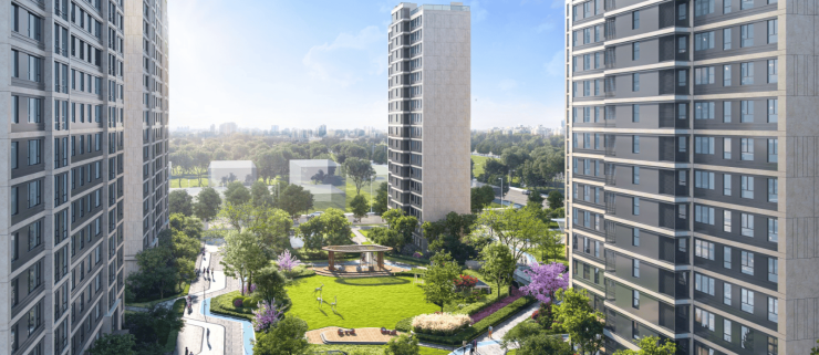 作为昆山北部新城稀缺的低密社区,海珀云庭占地3.84万㎡,总建面10.07万㎡,容积率仅1.8,绿化率达35%,规划10栋15-17层小高层,共418户,车位配比1:2,充分保障居住的私密性与舒适度^。社区采用“三轴四院”中轴对称布局,中央草坪花园、约400米健康跑道、亲子运动园串联起全龄生活场,移步易景的园林设计让回家成为一场穿越花园的旅行。