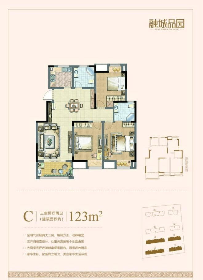 【建面123㎡3居】价格待定-分布于3幢 1幢 2幢 4幢 ,1梯2户,层高2.90米,总楼层6F