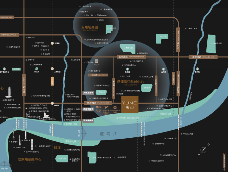 项目位于 杨浦滨江南段核心区 ,距黄浦江直线仅 200米 , 非新江湾、非五角场 , 无地铁口盘属性,但步行3–5分钟直达地铁18号线 。