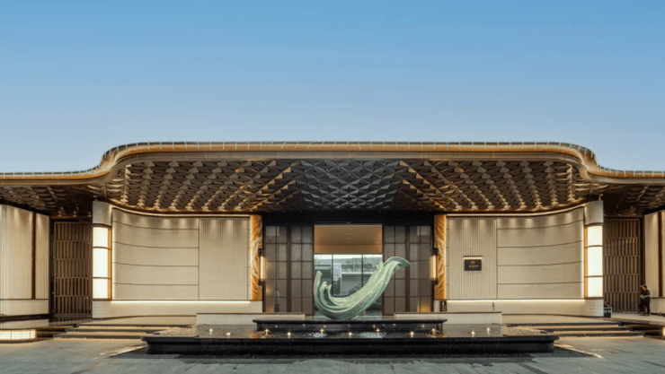 归家动线:约60米超尺度大门+恒温泳池,搭配进口奢石与铜制大门,营造星级酒店式归家仪式感。