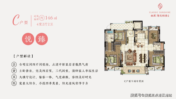 户型面积:146㎡(四室两厅两卫)